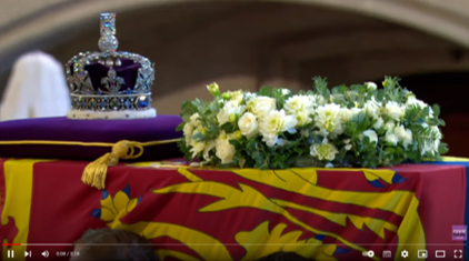 ในพระราชพิธีนี้ สื่อยังได้รายงานถึง ข้อความ 4 คำที่ปรากฎบนพวงมาลาหลวง หรือ พวงหรีด ของพระราชินีนาถเอลิซาเบธที่ 2 แห่งอังกฤษว่า “ในความทรงจำอันเป็นที่รัก , เอลิซาเบธ” (In loving memory, Elizabeth) ซึ่งวางบนหีบพระศพของเจ้าชายฟิลิป ดยุกแห่งเอดินบะระ