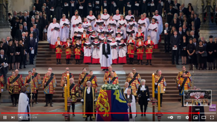 เมื่อพระศพของควีนเดินทางถึงตำหนักวินด์เซอร์ ขบวนอัญเชิญหีบพระศพจะประดับด้วยผ้าพระอิสริยยศ มงกุฎอิมพีเรียลสเตตบนเบาะกำมะหยี่ พวงหรีดดอกไม้จะประกอบด้วยกุหลาบขาว ดอกดาห์เลียขาว และใบไม้ที่จากที่ประทับของควีนที่ตำหนักแบลมอรัลและตำหนักวินด์เซอร์