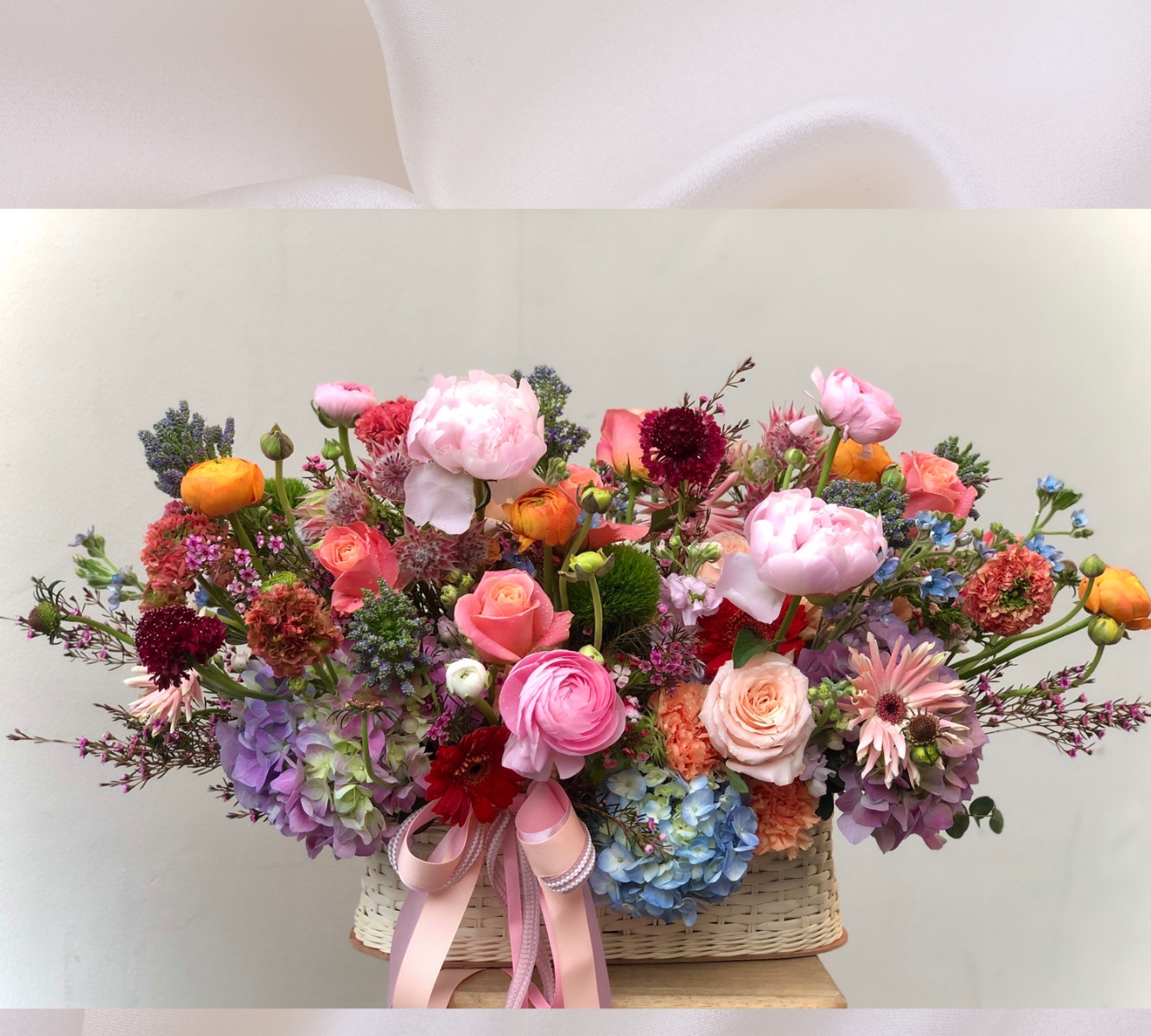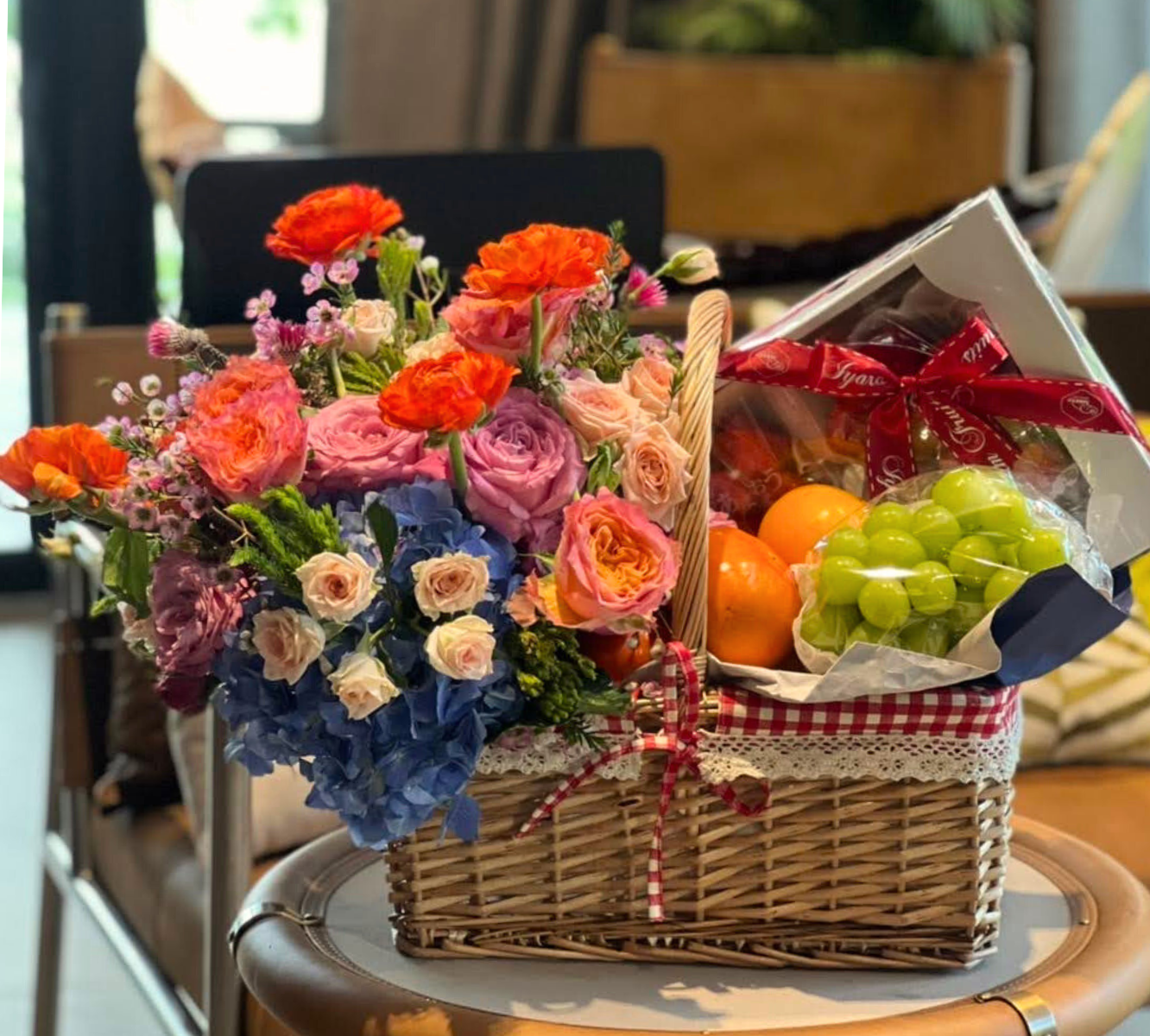 กระเช้าที่ตกแต่งด้วยดอกไม้สด (Flowers-centric Baskets) นี่คือจุดเปลี่ยน! การผสมผสานดอกไม้สดที่จัดอย่างพิถีพิถัน จะเพิ่มมิติของ ความหรูหรา ความยินดี และความมีชีวิตชีวา ทันทีที่ผู้รับได้เห็น