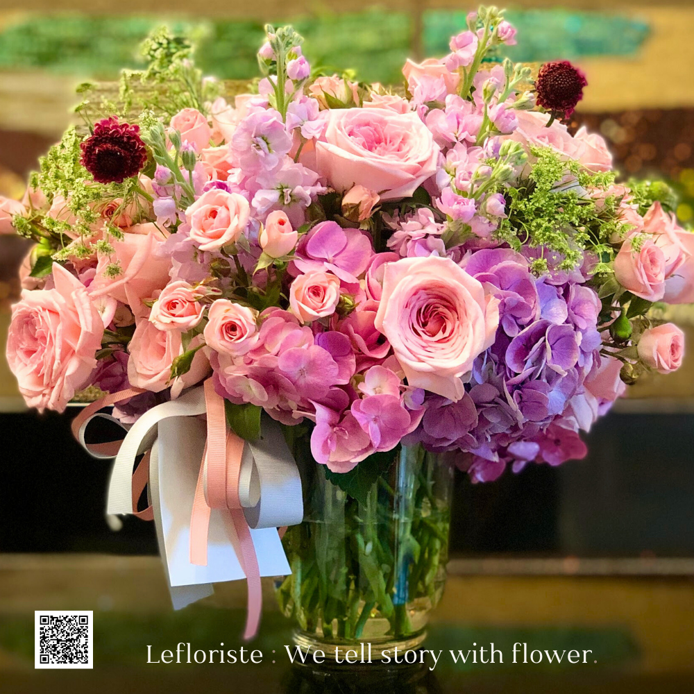 แจกันดอกไม้สดจาก LeFloriste คัดสรรดอกไม้พรีเมียมตามฤดูกาล จัดวางอย่างประณีตในแจกันแก้วใสที่ออกแบบมาเป็นพิเศษเพื่อความสง่างามเหนือกาลเวลา สามารถนำไปตั้งโชว์ในห้องรับแขก หรือห้องทำงานเพื่อเพิ่มความสดชื่นและมีชีวิตชีวาได้ทันที